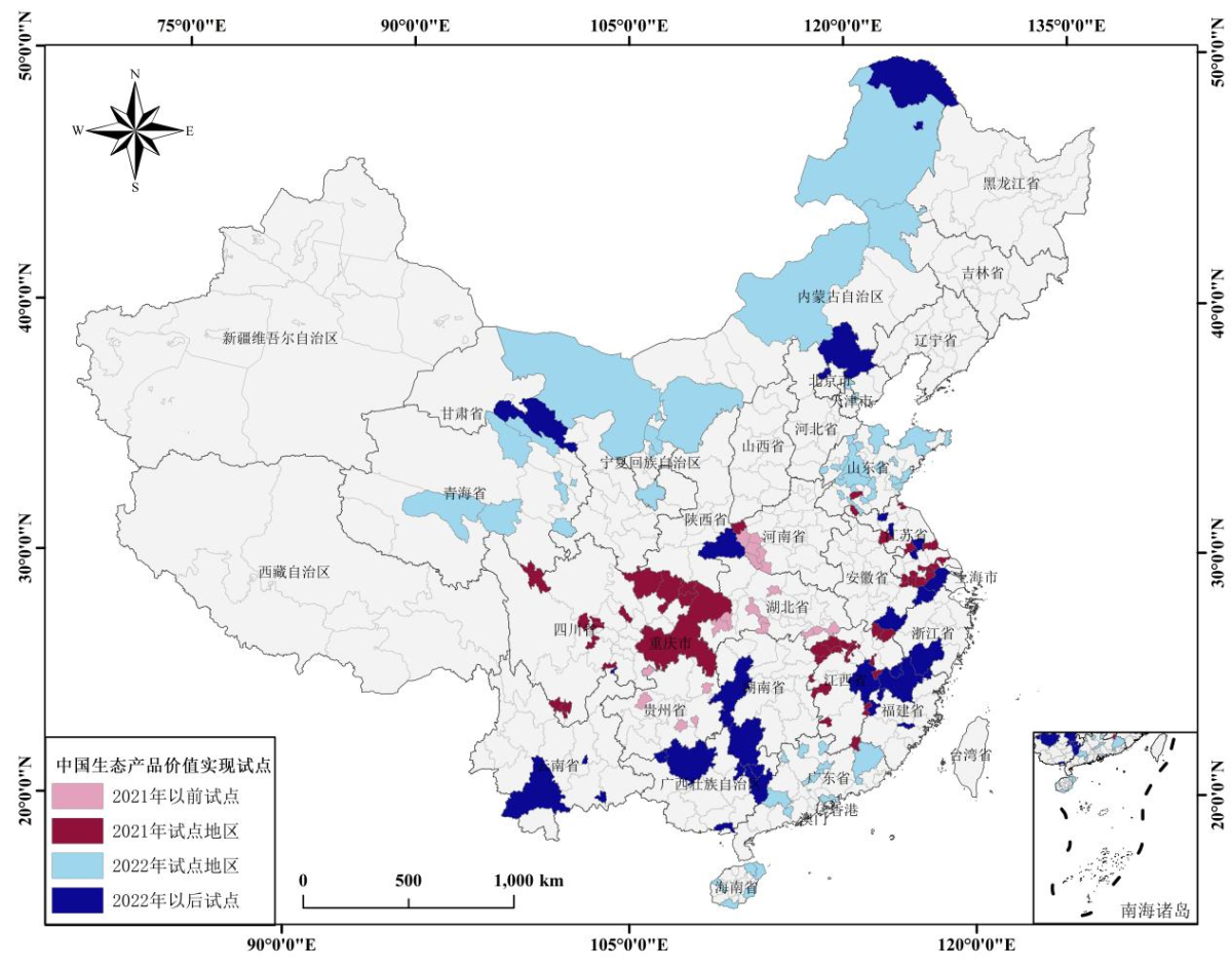 圖2 生態(tài)產(chǎn)品價(jià)值實(shí)現(xiàn)區(qū)域試點(diǎn)示范部署情況