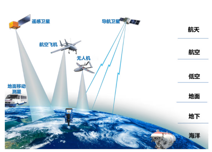 時空信息的落地,靠的是一套覆蓋“數(shù)據(jù)獲取-處理-應(yīng)用”的完整技術(shù)體系,核心是“天-空-地-海”協(xié)同: